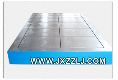 鑄鐵平板(鑄鐵平臺(tái))的包裝:鐵板包裝和木制包裝兩種形式,平臺(tái)表表用塑料膜封裝,這種包裝適于平板內(nèi)陸運(yùn)輸,并有良好的防潮、防震、防銹和防野蠻裝卸等保護(hù)平板的措施,以確保安全運(yùn)抵現(xiàn)場(chǎng)。 鑄鐵平板(鑄鐵平臺(tái))鑄鐵的運(yùn)輸:運(yùn)輸是保證平板不變形的一個(gè)重要環(huán)節(jié),所以運(yùn)輸平板時(shí)要保證不超載,不超速,不疲勞駕駛, 不在天氣惡劣的情況下運(yùn)輸。 鑄鐵平板(鑄鐵平臺(tái))安裝: 鑄鐵平板(鑄鐵平臺(tái))調(diào)試: 鑄鐵平板(鑄鐵平臺(tái))工作環(huán)境: 鑄鐵平板(鑄鐵平臺(tái))的使用注意事項(xiàng):平板在使用時(shí)要先進(jìn)行安裝調(diào)試。然后,把平板的工作面擦拭干凈,在確認(rèn)沒(méi)有問(wèn)題的情況下使用,使用過(guò)程中,要注意避免工件和平板的工作面有過(guò)激的碰撞,防止損壞平板的工作面;工件的重量更不可以超過(guò)平板的額定載荷,否則會(huì)造成工作質(zhì)量降低,還有可能損壞平板的結(jié)構(gòu),甚至?xí)斐善桨遄冃危怪畵p壞,無(wú)法使用。 平板在使用時(shí)要先進(jìn)行安裝調(diào)試。然后,把平板的工作面擦拭干凈,在確認(rèn)沒(méi)有問(wèn)題的情況下使用,使用過(guò)程中,要注意避免工件和平板的工作面有過(guò)激的碰撞,防止損壞平板的工作面;工件的重量更不可以超過(guò)平板的額定載荷,否則會(huì)造成工作質(zhì)量降低,還有可能損壞平板的結(jié)構(gòu),甚至?xí)斐善桨遄冃危怪畵p壞,無(wú)法使用。 鑄鐵平板(鑄鐵平臺(tái))的制造標(biāo)準(zhǔn):按JB/T7974-1999制造)簡(jiǎn)要描述 下載PDF文檔 鑄鐵平板(鑄鐵平臺(tái))的質(zhì)量檢測(cè): 1、鑄鐵平板(鑄鐵平臺(tái))工作表面不應(yīng)有銹跡、劃痕、碰傷及其他影響使用的外觀缺陷。2、鑄鐵平板(鑄鐵平臺(tái))工作表面不應(yīng)有砂孔、氣孔、裂紋、夾渣及縮松等鑄造缺陷。各種鑄造表面應(yīng)清除型砂、且表面平整,涂漆牢固。各棱邊應(yīng)修鈍。在精度等級(jí)低于“00”級(jí)的平板工作面上,對(duì)于直徑小于15mm的砂孔允許用相同的材料堵塞,其硬度應(yīng)低于周圍材料的硬度。在工作面上堵塞的部位應(yīng)不多于四處,其相互之間的距離應(yīng)不小于80mm。 3、在鑄鐵平板(鑄鐵平臺(tái))的相對(duì)兩個(gè)側(cè)面上,應(yīng)設(shè)置有安裝手柄、吊環(huán)等吊裝設(shè)施的螺紋孔或圓柱孔。設(shè)計(jì)吊裝位置時(shí)應(yīng)考慮盡量減少因吊裝而引起的變動(dòng)。 4、根據(jù)用戶要求,在板工作面上設(shè)置螺紋孔或溝槽后,這些部位不應(yīng)出現(xiàn)高于工作面的凸起現(xiàn)象。 5、鑄鐵平板(鑄鐵平臺(tái))應(yīng)采用優(yōu)質(zhì)細(xì)顆料的灰口鑄鐵或合金鑄鐵制造。 6、鑄鐵平板(鑄鐵平臺(tái))工作面的硬度應(yīng)為HB 170-220。 7、鑄鐵平板(鑄鐵平臺(tái))工作面應(yīng)采用刮削工藝,對(duì)于“3”級(jí)平板工作面也可以采用刨削工藝,刨削工作表面的表面粗糙度按輪廓算術(shù)平均偏差Ra值應(yīng)不大于5um 8、鑄鐵平板(鑄鐵平臺(tái))應(yīng)經(jīng)過(guò)穩(wěn)定性處理和去磁。 鑄鐵平板(鑄鐵平臺(tái))平 面 度:可分實(shí)驗(yàn)室級(jí)(Reference)、校驗(yàn)級(jí)(Master)、工 具室級(jí)(Working) 三級(jí) 鑄鐵平板(鑄鐵平臺(tái))平面研磨:平臺(tái)在很早的時(shí)候,人們利用三塊平臺(tái)相互匹配以產(chǎn)生真平平面。一個(gè)熟練而 又有耐心的 磨石師傅可以不藉助任何量測(cè)儀器,而僅利用三平臺(tái)相互匹配的 方式,做多次90度之旋轉(zhuǎn), 即可產(chǎn)生令人難以相信的真平程度。 鑄鐵平板(鑄鐵平臺(tái))平面度: 1.AA級(jí):其平面度(μm)= 1+1.6D2 (D為平臺(tái)對(duì)角線長(zhǎng)或直徑),用於高度精密 之測(cè)定之用, 常用於實(shí)驗(yàn)室。 2. A級(jí):其平面度為AA級(jí)之兩倍誤差,常用於工具檢驗(yàn)室作精密量具之檢驗(yàn)之用。 3. B級(jí):其平面度為AA級(jí)之四倍誤差,常用於工具檢驗(yàn)室或在現(xiàn)場(chǎng)檢驗(yàn)量具或劃線之用。 鑄鐵平板(平臺(tái))的分類: 按照用途分: 鑄鐵平板(平臺(tái))可以分為:基礎(chǔ)平板、劃線平板、檢驗(yàn)平板、鉚焊平板、焊接平板、火工平板、鉗工平板、研磨平板、刮痧平板、壓沙平板、試驗(yàn)平板、機(jī)床工作臺(tái)(如:落地鏜床工作臺(tái))、三座標(biāo)平板、模具墊板、拼裝平板(也叫裝配平板)。 或:基礎(chǔ)平臺(tái)、劃線平臺(tái)、檢驗(yàn)平臺(tái)、鉚焊平臺(tái)、焊接平臺(tái)、火工平臺(tái)、鉗工平臺(tái)、研磨平臺(tái)、刮痧平臺(tái)、壓沙平臺(tái)、試驗(yàn)工作臺(tái)(如:振動(dòng)試驗(yàn)工作臺(tái)簡(jiǎn)稱振動(dòng)試驗(yàn)臺(tái))、機(jī)床工作臺(tái)(如:落地鏜床工作臺(tái))、三座標(biāo)平臺(tái)、模具工作臺(tái)、拼裝平臺(tái)(也叫裝配平臺(tái))。 按照形狀分類:普通平板(普通平臺(tái))、圓形平板(也叫圓平板/圓平臺(tái)/圓形平臺(tái))、方平板(方平臺(tái)) 按照表面工藝可以分為:平面平板和T型槽平板(T型槽平臺(tái))